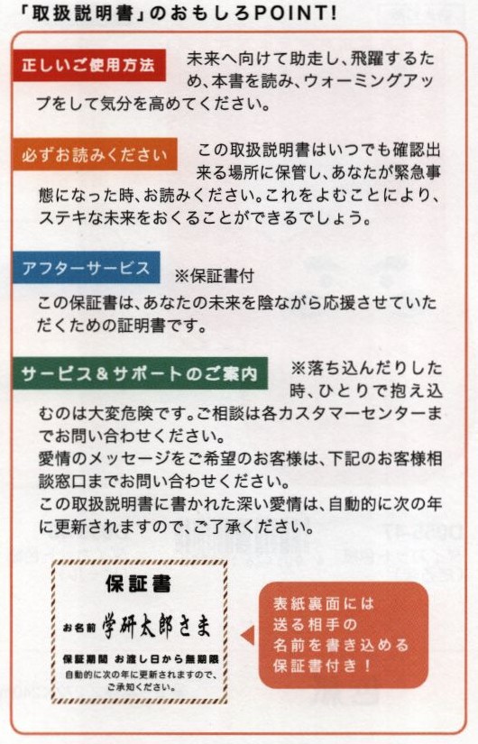 メッセージシール付色紙「取扱説明書」