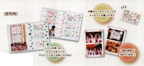 | 店長による商品解説 | メッセージカードをみんなに配って寄せ書きできます。大勢でも時間をかけずに寄せ書きでき、便利です。 1ページあたり、3枚のメッセージカード(名刺サイズ)を貼ることができます。 最高30枚まで貼れます。20枚は付属しているので、それ以上必要である場合には、別売りのメッセージカード「MC-11128」をお買い求め下さい。 また、1ページにはL判の写真が2枚貼れます。 |