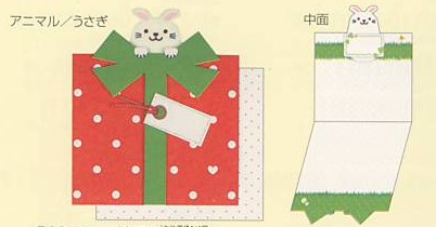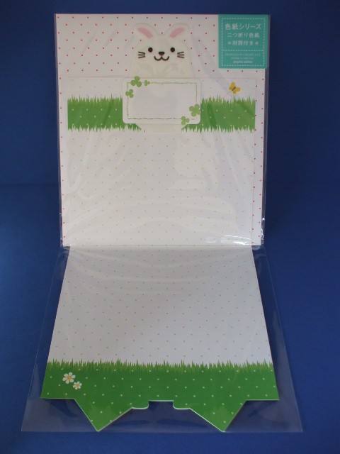 店長による商品解説 ウサギの部分がヴィベール素材で浮かし貼りされている2つ折色紙です。封筒付き。