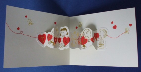 スヌーピーのポップアップ・サンキューカードです。随所に金色の箔押し加工あり。