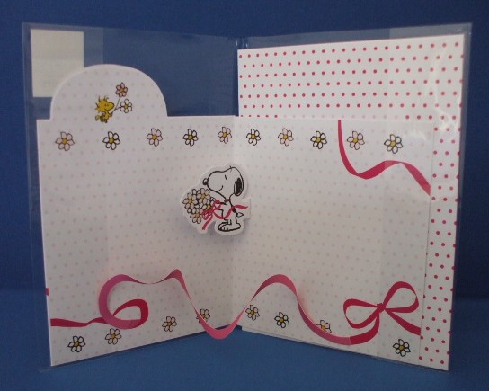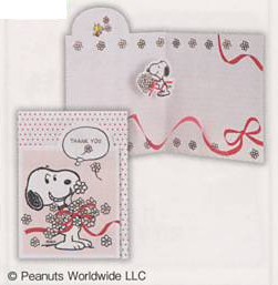 スヌーピーのポップアップ・サンキューカードです。随所にラメ加工あり。