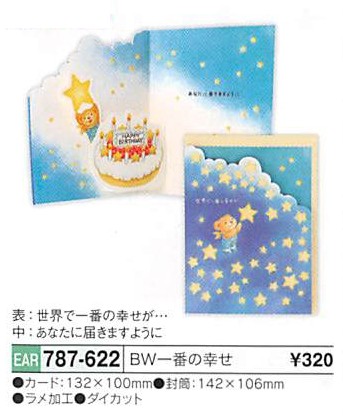| 店長による商品解説 | ベアーズウイッシュシリーズのポップアップバースデーカードです。 絵柄の一部にラメ加工がなされています。 2023年2月1日メーカー出荷分より、値上げに伴い、品番が変更となりました。(新品番:EAR-817-121) |