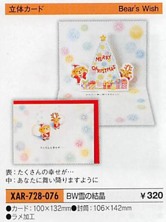 ベアーズウイッシュシリーズの立体クリスマスカードです。絵柄の随所にラメ加工がなされています。