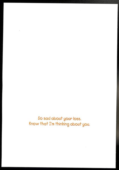 「So sad about your loss. Know that I'm thinking about you.」