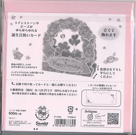 封筒及びカードなど商品のサイズ、重量は、生産上多少前後する場合もございます。予めご了承下さい。