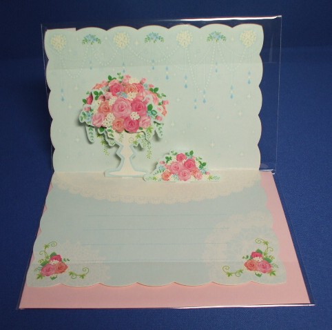 バラのポップアップ・多用途カード(青)