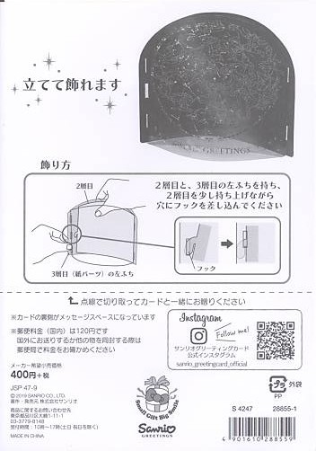 - 海外宛に25g以下のグリーティングカード(クリスマスカード、ホリデーカード、誕生日カードなどカードの内容については問わないそうです。)を郵送する場合には、封筒に「Greeting Card」と英文にて表記することにより、定形外であっても定形書状の料金が適用されます。詳しくは、郵便局ホームページにてご確認下さい。