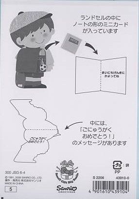 小学校入学祝カード(男児:ランドセル)
