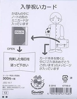 中高入学祝いカード(男子:学生服)
