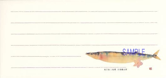 片岡鶴太郎・一筆箋「秋刀魚に桔梗」