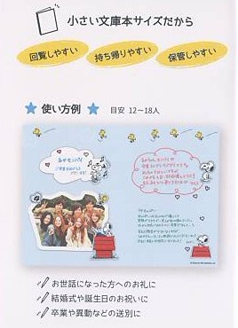小さい文庫本サイズだから、回覧し易く、持ち帰り易く、保管もし易い。誕生日や結婚式の御祝い、恩師へのお礼、異動などの送別の機会にご利用頂けるアイテムです。