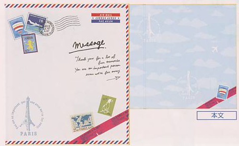 •  海外宛に25g以下のグリーティングカード(クリスマスカード、ホリデーカード、誕生日カードなどカードの内容については問わないそうです。)を郵送する場合には、封筒に「Greeting Card」と英文にて表記することにより、定形外であっても定形書状の料金が適用されます。詳しくは、郵便局ホームページにてご確認下さい。